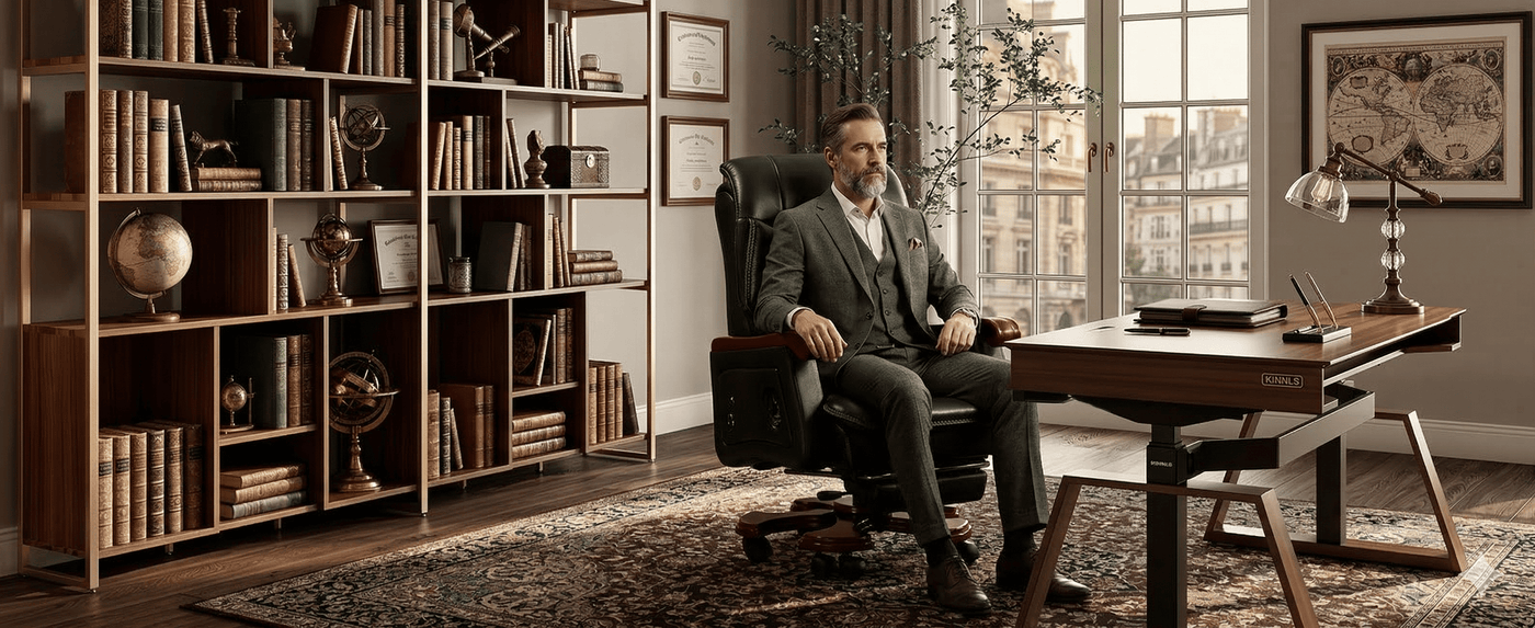 Retro Design + Luxury Full-Grain Cowhide upgrade blends retro-mid-century style with solid wood armrests (sturdier than plastic, no noise) and full-grain leather—elevates offices/studies to designer-level aesthetics.