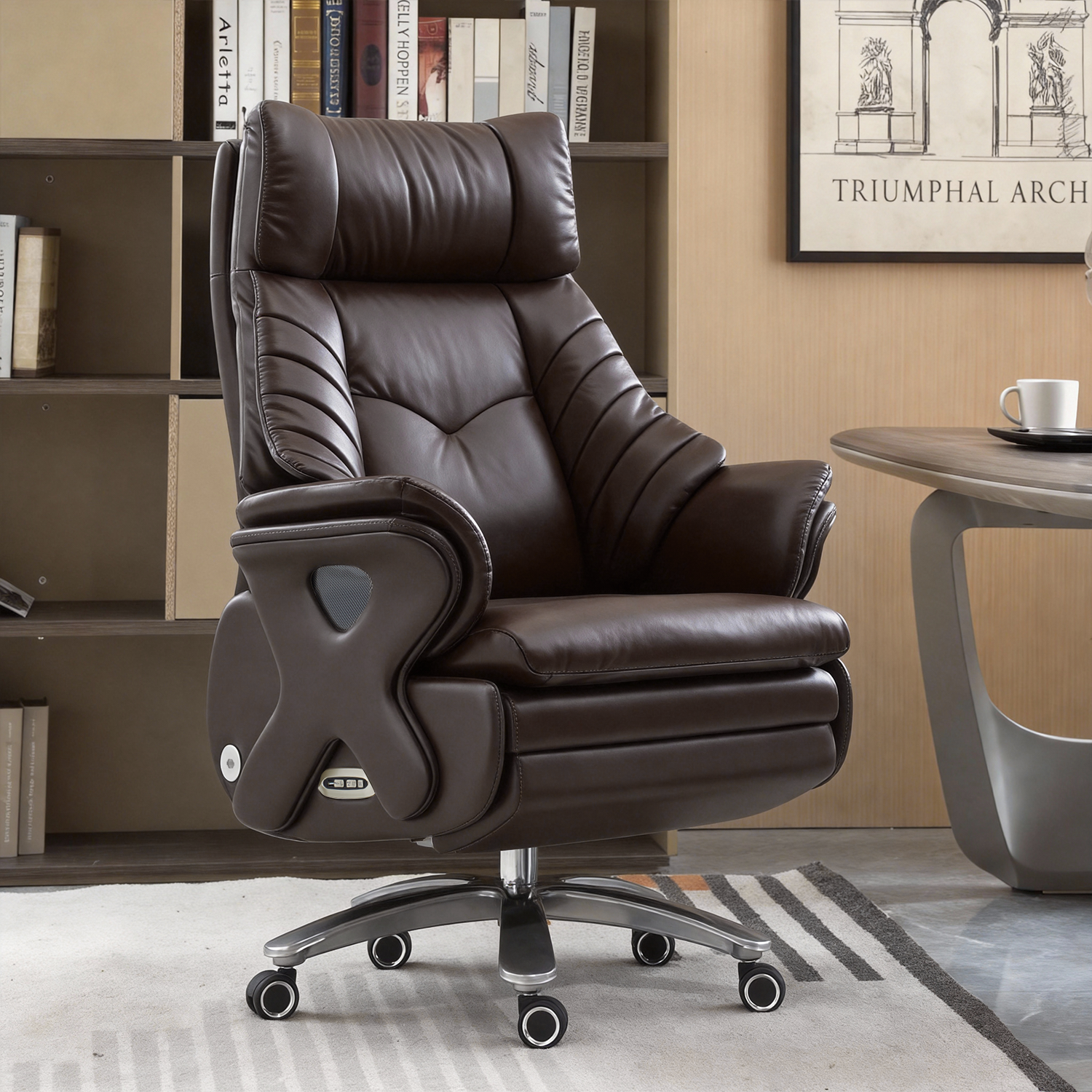 Forbes Massage Office Chair - Cowhide Leather / Power Recliner + Massage + Ventilation + Heating / Coffee is backordered and will ship as soon as it is back in stock.