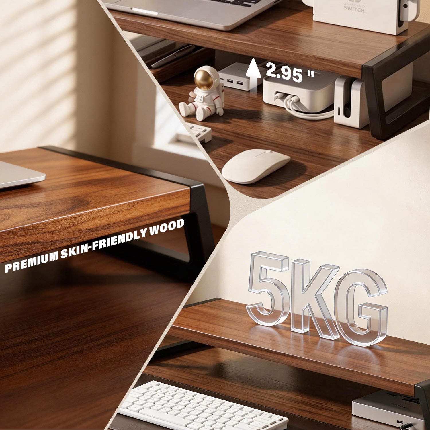 Premium Aesthetic: The rich walnut-style wood top paired with a matte black minimalist frame complements any modern decor—from tech-heavy setups to cozy home offices.