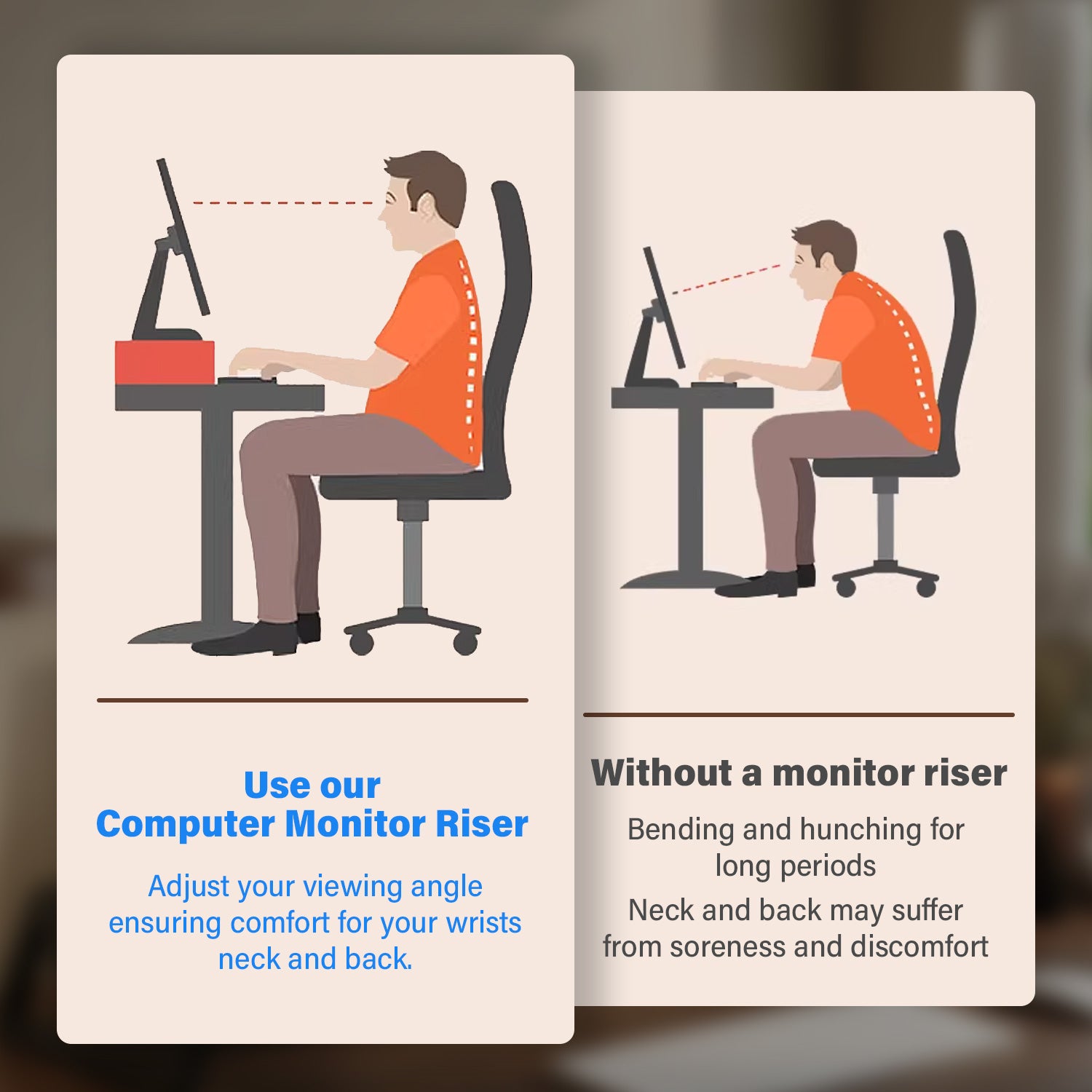 Ergonomic Comfort: Elevates your monitor to an optimal eye-level height, reducing neck and eye strain while improving your posture during long working hours.