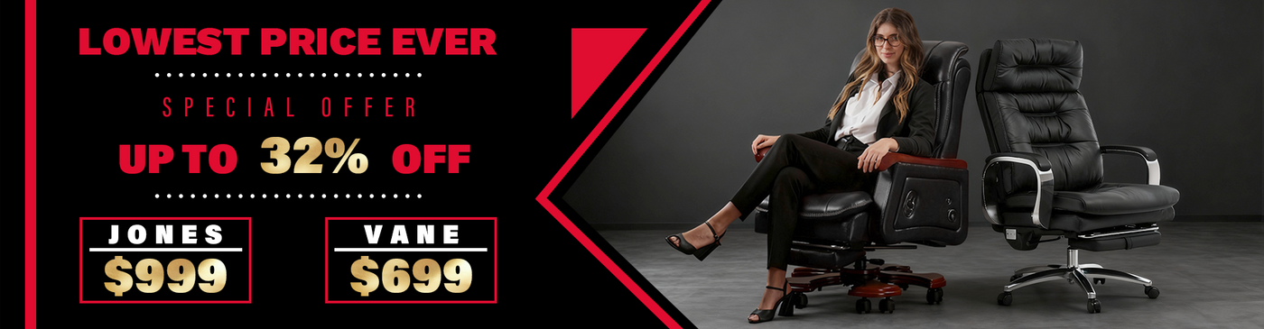 Sleek executive styling with smart comfort: Double‑layer lumbar support, and massage features for everyday ease.