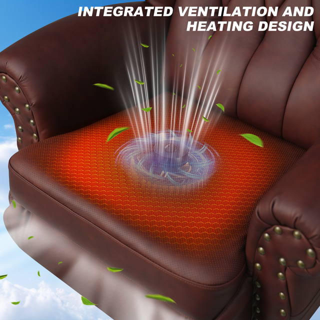 Ergonomic spine-fit design eases back pressure; thick latex+high-density foam cushion offers sofa-like wrap. Built-in ventilation + heating eliminates stuffiness.