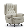 Imported cowhide for premium feel; high-back + padded armrests + footrest provides full-body support, fits all office decors.