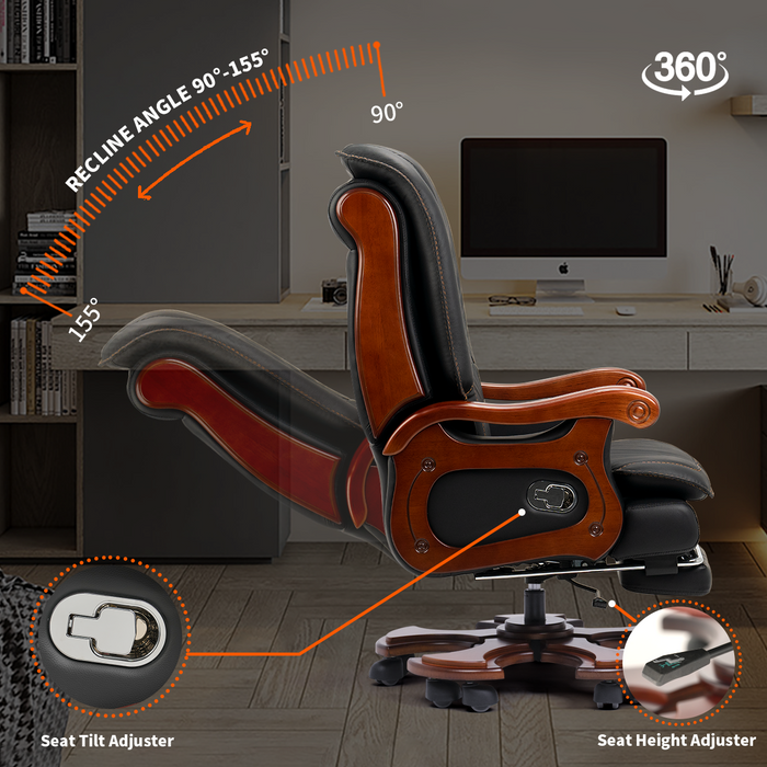 Compared with the plastic armrests of all other executive office chairs, our stylish solid wood armrests are more durable and have no safety and noise issues.