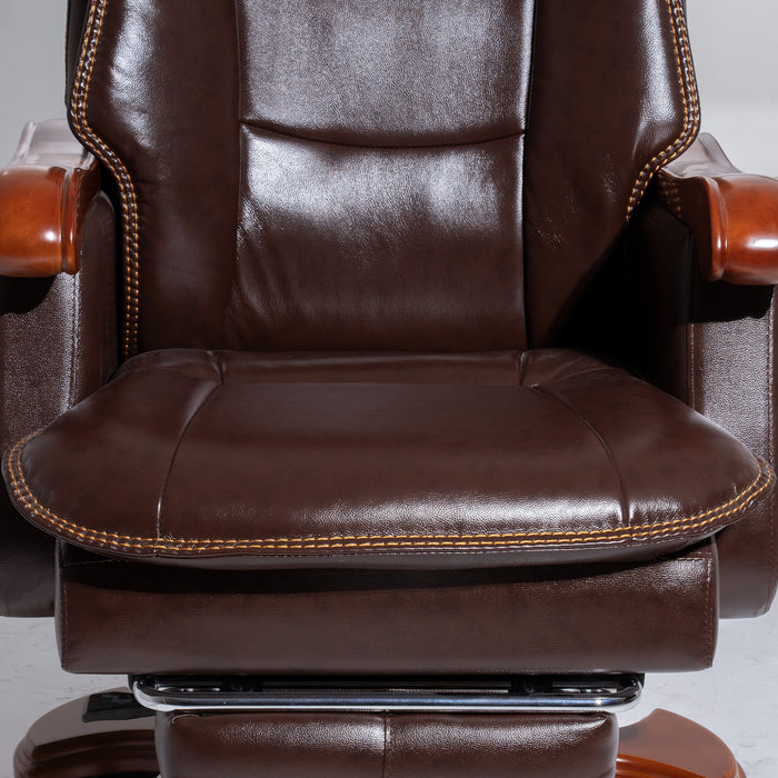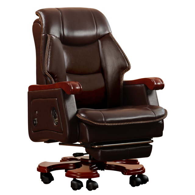 Retro Design + Luxury Full-Grain Cowhide 2025 upgrade blends retro-mid-century style with solid wood armrests (sturdier than plastic, no noise) and full-grain leather—elevates offices/studies to designer-level aesthetics.