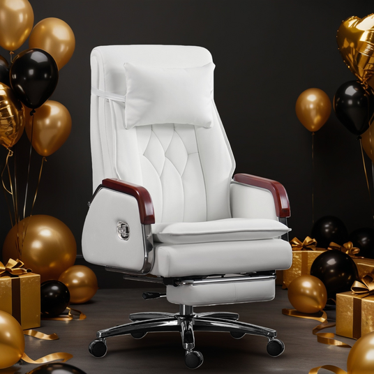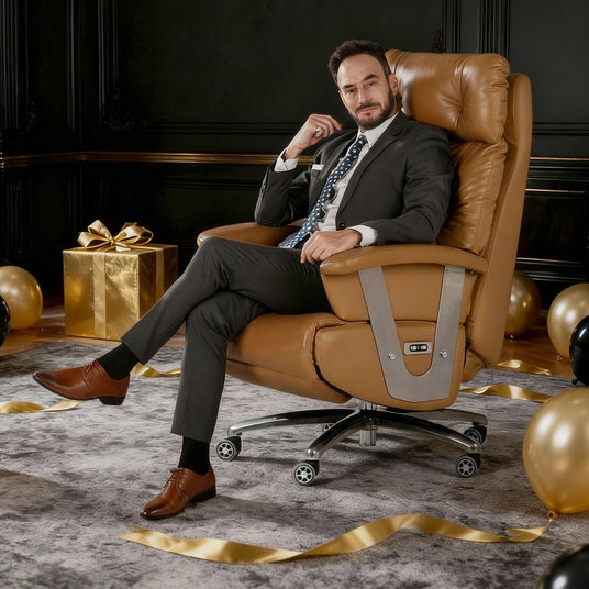 Sleek executive styling with smart comfort: Double‑layer lumbar support, and massage features for everyday ease.